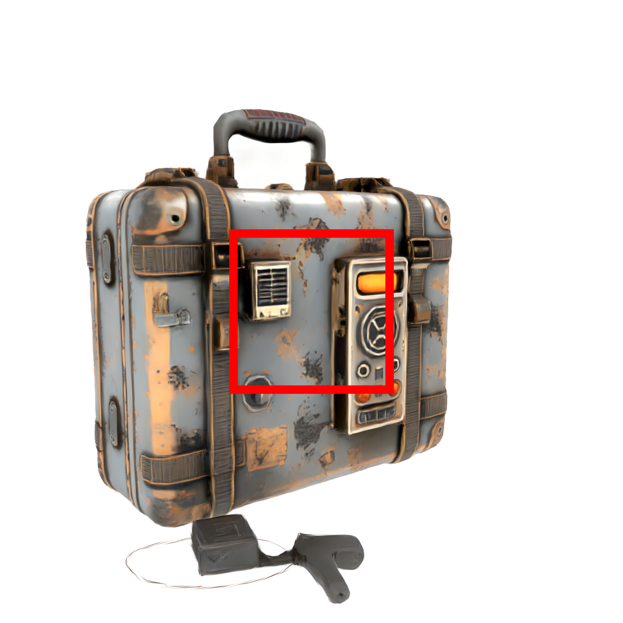 User-specified edits (e.g., graffiti) are propagated consistently across views while preserving the original asset identity. The 3DGS assets are generated from Trellis.