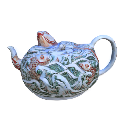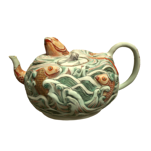 A few relit input views drive a consistent global change in shading and color across the full asset.
